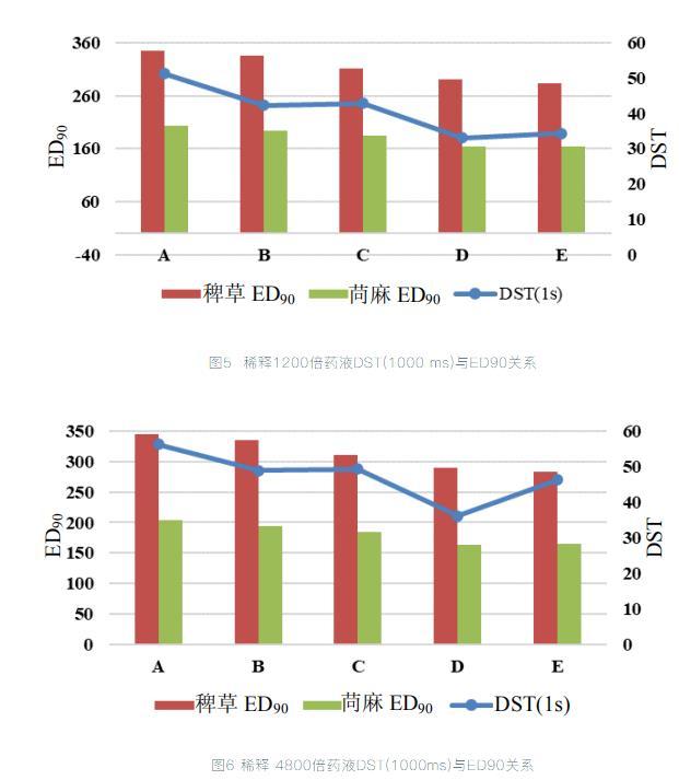 表1不同稀釋倍數藥液DST變化值