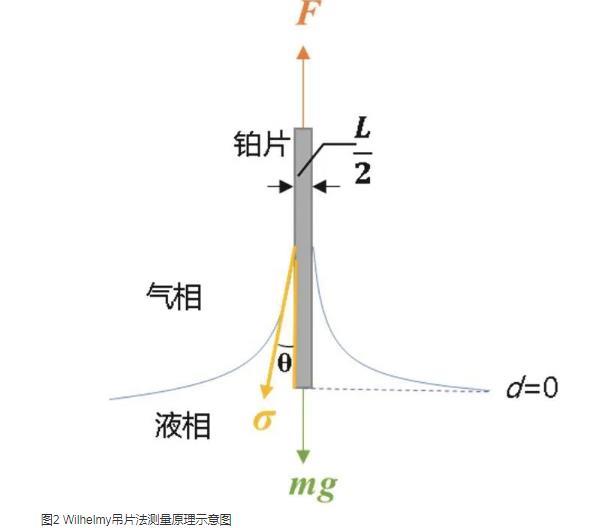 測量過程中,首先將鉑金片安裝在界面張力儀上,歸零,即F=mg,此時,σ=0;當鉑金片浸入樣品溶液后,界面張力儀測得F,經過儀器內算法的換算,溶液的表面張力可在界面張力儀中直接讀出。