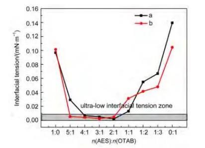 烷基季銨鹽OTAB/AES/保護劑T三組分復配體系在克拉瑪依實際油水體系中獲得超低界面張力