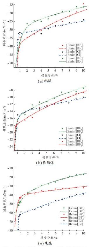 3.不同煤種的高效離子液體水溶液復(fù)配研究