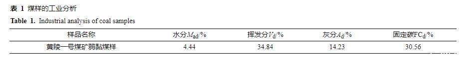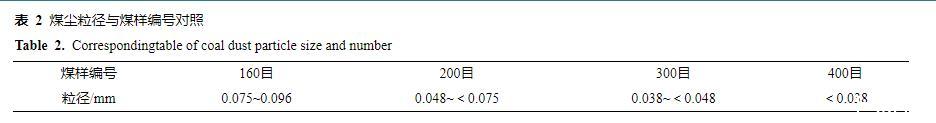 將EMI原液稀釋至質(zhì)量分?jǐn)?shù)分別為0.1%、0.2%、0.4%、0.6%、0.8%、1.0%、2.0%、4.0%、6.0%、8.0%的混合溶液。實(shí)驗(yàn)煤樣選取黃陵一號(hào)煤礦弱黏煤樣,煤樣工業(yè)分析結(jié)果見(jiàn)表1。在制備煤塵樣品時(shí),根據(jù)有關(guān)文獻(xiàn)對(duì)黃陵一號(hào)煤礦綜采工作面煤塵粒徑分布進(jìn)行檢測(cè),并結(jié)合國(guó)際標(biāo)準(zhǔn)化組織對(duì)粉塵粒徑的定義,以及實(shí)驗(yàn)室制備條件,去除煤塊外表皮,使用破碎機(jī)對(duì)煤心破碎60 s,用160、200、300、400目標(biāo)準(zhǔn)工業(yè)篩對(duì)煤粉進(jìn)行篩分,共篩分出0.075~0.096、0.048~<0.075、0.038~<0.048、<0.038 mm共4個(gè)粒度范圍的樣品進(jìn)行實(shí)驗(yàn),其中煤塵粒徑與煤樣編號(hào)見(jiàn)表2。煤樣制備完成后,將其放入80℃的真空干燥箱,真空干燥8 h后密封保存以備實(shí)驗(yàn)使用。
