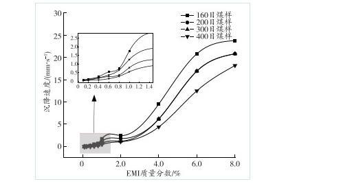 圖8煤塵沉降速度與EMI質(zhì)量分?jǐn)?shù)的關(guān)系