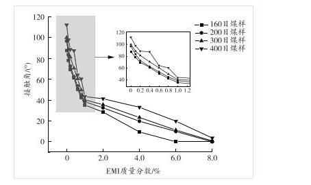 2.2 EMI質(zhì)量分?jǐn)?shù)對(duì)接觸角的影響