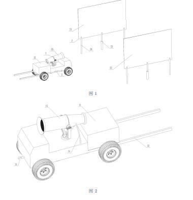 所述公路施工用降塵設備執行降塵動作,降塵動作包括:控制器通過攝像頭判斷施工的公路是否有揚塵情況,若出現揚塵則獲取揚塵的所在的路段,啟動噴頭對準揚塵所在路段,同時啟動正電荷發生裝置11和加壓裝置12向所在的路段噴淋帶有正電荷的液滴,同時將所在的路段的若干組電極板組2的繼電器實現接通對應的第一電極板21、第二電極板22,同時交變電場發生裝置使得第一電極板21和第二電極板22之間產生交變電場;帶有正電荷的液滴在交變電場中產生振蕩進而降低液滴表面張力作用;