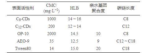 表1 5種表面活性劑的理化性質
