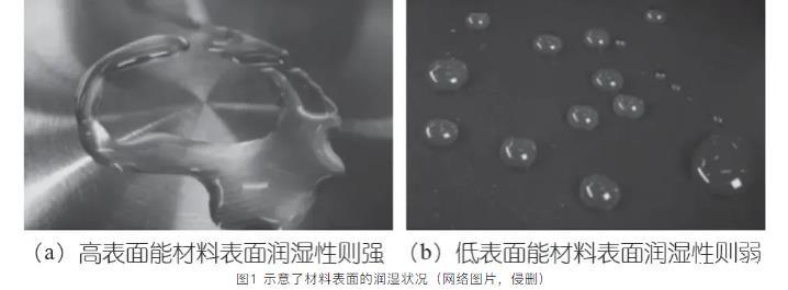 圖1示意了材料表面的潤濕狀況(網(wǎng)絡(luò),侵刪)