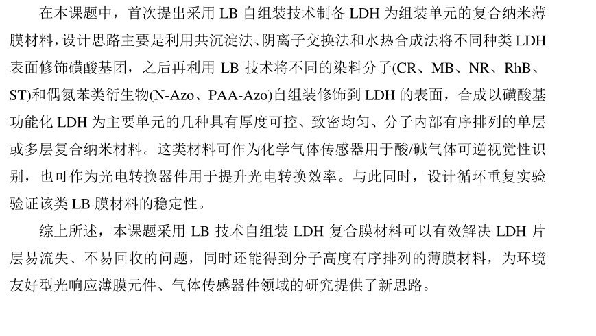 LDH/染料復合LB膜組裝過程的多樣化和化學氣體傳感機理研究
