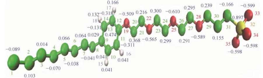 圖1辛基酚聚氧乙烯醚磺酸鹽的分子結構以及電荷分布