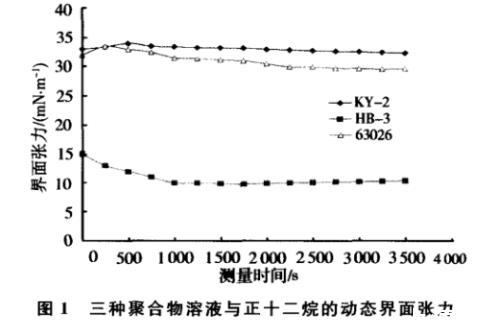圖1三種聚合物溶液與正十二烷的動(dòng)態(tài)界面張力