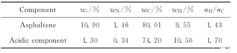 表1勝利原油中瀝青質及酸性組分的含量及其元素分析結果