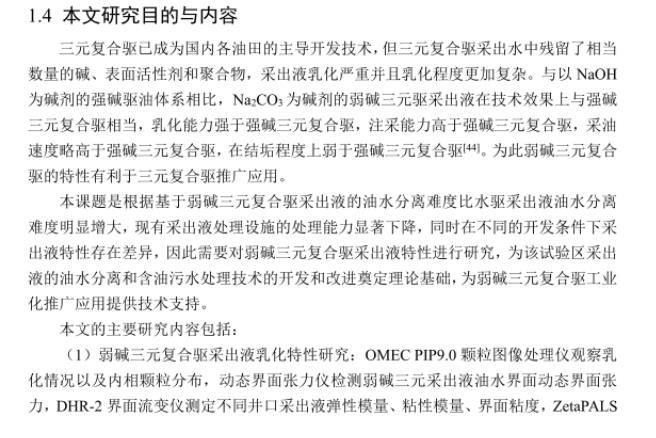 弱堿三元復(fù)合驅(qū)采出液中殘留了相當(dāng)數(shù)量的堿、表面活性劑和聚合物,油水乳化嚴(yán)重且多種乳狀液并存,造成油水分離困難。弱堿三元驅(qū)采出液處理技術(shù)的研究對(duì)弱堿三元采出液油水分離工藝及操作參數(shù)的選擇奠定了理論基礎(chǔ),有利于弱堿三元復(fù)合驅(qū)在油田中的應(yīng)用。