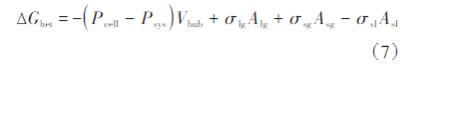 其中,Pcell是泡孔中的氣體壓力,Pa;Psys是周圍系統的壓力,Pa;A是表面積,m2;σ是界面張力,mN/m;l、g、s分別表示熔體、氣體和固體相。