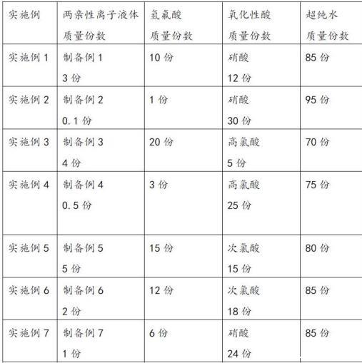 分別稱(chēng)取各自用量的各個(gè)組分,然后將超純水、氫氟酸、氧化性酸、兩親性離子液體依次加入容器內(nèi),充分?jǐn)嚢枞芙?,最后過(guò)濾,即得所述多晶硅蝕刻液。