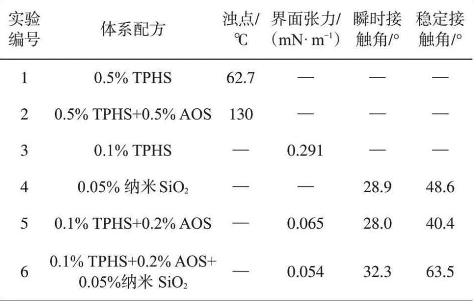 2.4 TPHS復(fù)配體系的界面活性與潤濕性