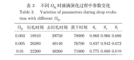 表3不同Ωlg時液滴演化過程中參數變化
