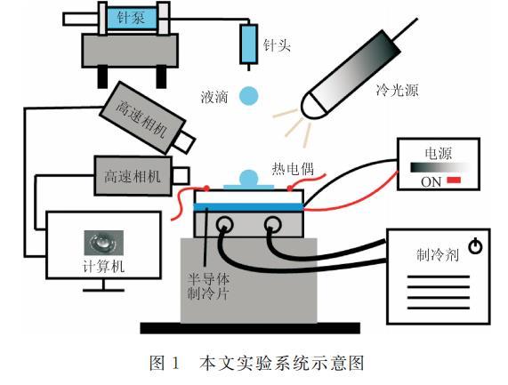 盡管如此,目前針對低表面張力液滴沖擊過冷水平壁面的研究仍有所欠缺。液滴在過冷表面上的沖擊和應用在生活中也十分常見,例如噴霧凍結、高空中的過冷水滴沖擊機翼導致結冰、過冷噴涂等。本文針對乙醇液滴沖擊過冷親水水平壁面這一基本物理現象開展實驗,針對其鋪展動力學行為進行分析與討論,旨在探究低表面張力對液滴沖擊過冷水平壁面的鋪展動力學行為的影響。這一研究有助于加深對固液接觸現象的理解,為更好的控制固液介面接觸提供有效指導。