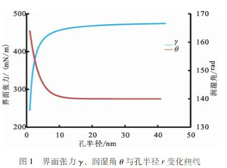 圖1界面張力γ、潤(rùn)濕角θ與孔半徑r變化曲線
