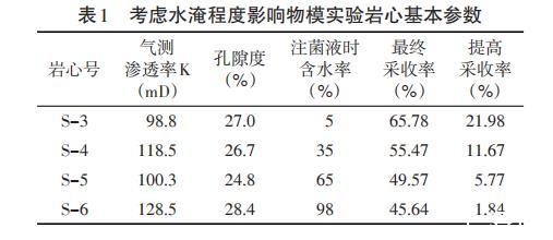 表1考慮水淹程度影響物模實驗巖心基本參數