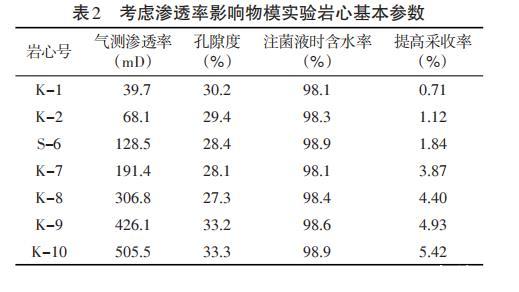 2.3.3評價滲透率對微生物驅油的影響