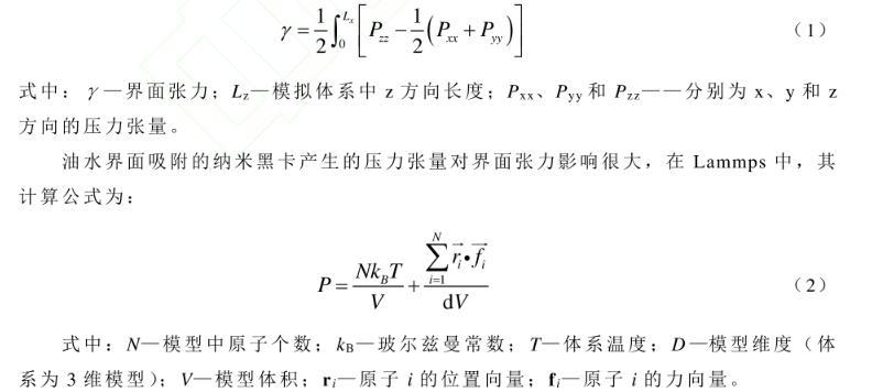 油水界面吸附的納米黑卡產(chǎn)生的壓力張量對(duì)界面張力影響很大,在Lammps中其計(jì)算公式為: