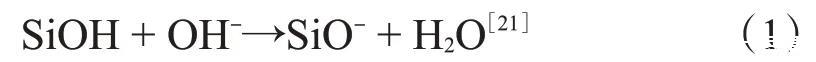 模擬地層水配制的納米SiO2/SDS體系的pH值在8.5左右,此時,納米SiO2表面的羥基會和OH-發(fā)生如下反應(yīng):