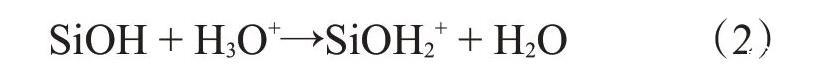 在酸性介質(zhì)中,納米SiO2表面的羥基會和游離的質(zhì)子化水發(fā)生如下反應(yīng):