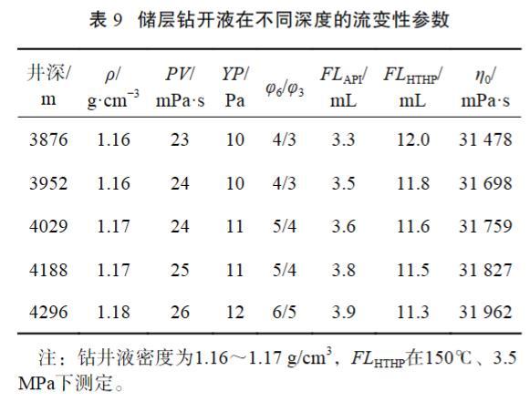 從X2調整井振動篩返出口取得不同深度下鉆開液的性能如表9所示。