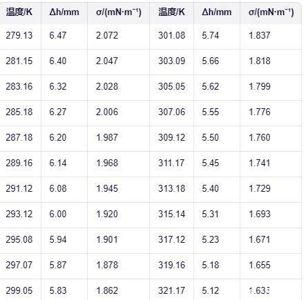表面張力儀系統測定:溫度范圍內甲基九氟丁醚的液相密度與表面張力