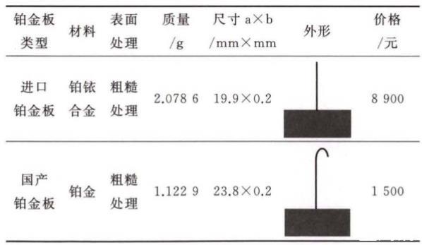 原配進(jìn)口鉑金板和BZY-1原配國(guó)產(chǎn)鉑金板的主要區(qū)別如表1。