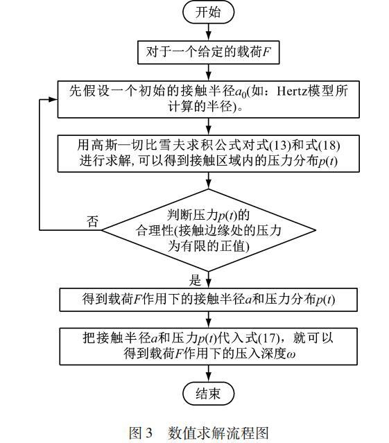由于式(18)為奇異積分,難以獲得它的解析解,故本文采用高斯-切比雪夫求積公式對單個微凸體模型進行數(shù)值求解,詳細的求解步驟如下,圖3給出了數(shù)值求解流程步驟為: