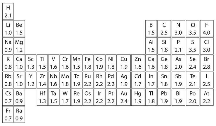 上圖是元素周期表中部分元素電負(fù)性的標(biāo)量,電負(fù)性是一個無單位數(shù),數(shù)字越高,原子吸引電子的能力越強(qiáng)。我們可以通過確定參與共價鍵的兩個原子的電負(fù)性的差異來判斷共價鍵的極性: