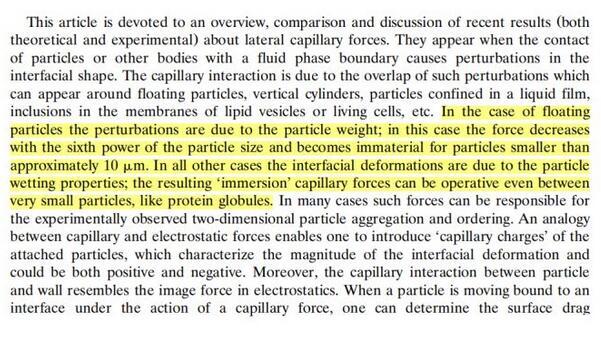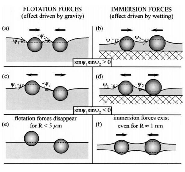 這里寫的也比較清楚,漂浮顆粒之間的毛細(xì)作用由重力引起,其他的情況則是由顆粒的浸潤性導(dǎo)致。如果有人還有疑問的話,歡迎留言討論。