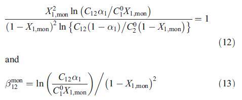 混合膠束規則溶液理論可以推廣到混合單層。為了評估混合單分子層中的相互作用參數bmon 12,可以在恒定γ值下推導出混合膠束的類似方程,如下[24,25]: