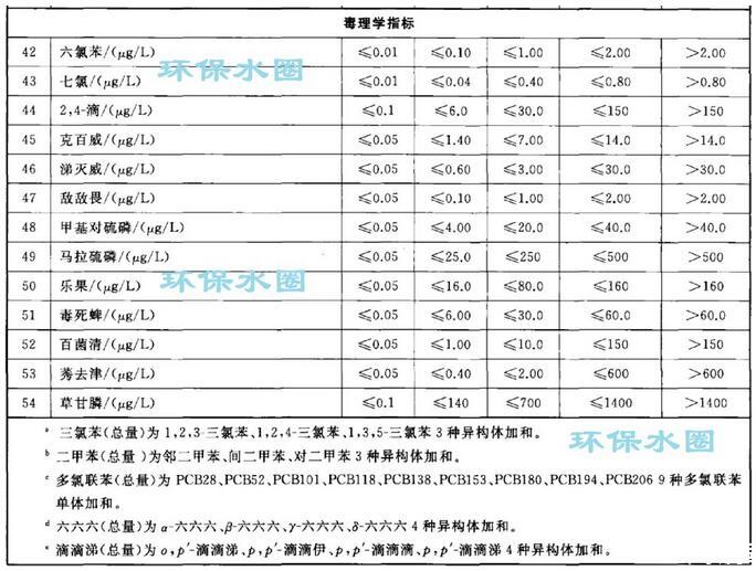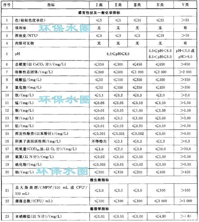 依據(jù)我國(guó)地下水質(zhì)量狀況和人體健康風(fēng)險(xiǎn),參照生活飲用水、工業(yè)、農(nóng)業(yè)等用水質(zhì)量要求,依據(jù)各組分含量高低(pH除外),分為五類。