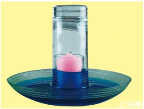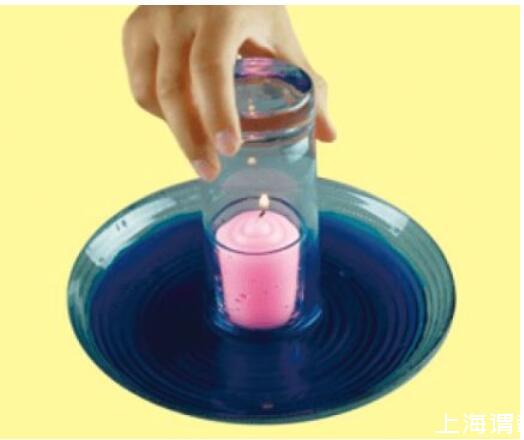 解密時刻:當蠟燭熄滅時,玻璃杯中的水會逐漸上升,上升到一定程度后,停止。因為蠟燭燃燒,消耗了玻璃杯中的氧氣,減少的這部分氧氣被水填充。
