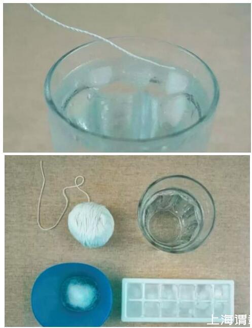 實驗材料:一杯水、冰塊、繩子、食用鹽