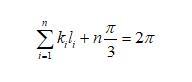 假設二維干泡沫中的任一氣泡如圖3b所示,氣泡的邊數為n,從a點開始,再回到a的邊長分別標記為l1到ln,每邊所對應的曲率為k1到kn(Plateau第一定律)。現在假設有一點從a點沿著邊向b運動,到b點時,所走的路徑為l1,轉動的角度為這條邊所對應的圓心角(向外為正,向內為負值),為k1*l1。此時要想繼續沿著邊運動,需要向內轉動π/3角度(根據Plateau第二定律),如圖3b所示。轉動后繼續運動,直到到達原來的點a。此過程,n條邊總共在頂點處轉動的角度為nπ/3,在邊上轉動的角度為