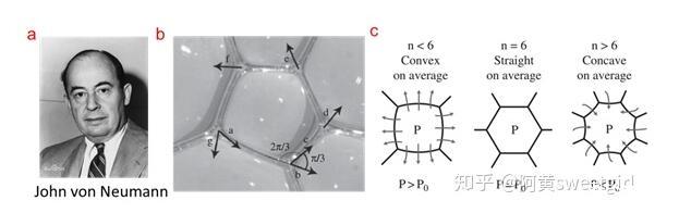 Von Neumann的二維演變方程的著名及其重要性是它不單單適用于二維泡沫,凡是具有網格結構的二維體系,界面移動受界面張力調控,其速率受界面曲率調控的情形都可以用這個方程去表達。這種情形在自然界中是十分普遍的,比如如水上面油脂分子層的演化、熔化時晶界的變化、冰晶的生長等(Ref 5,Ref 6)。