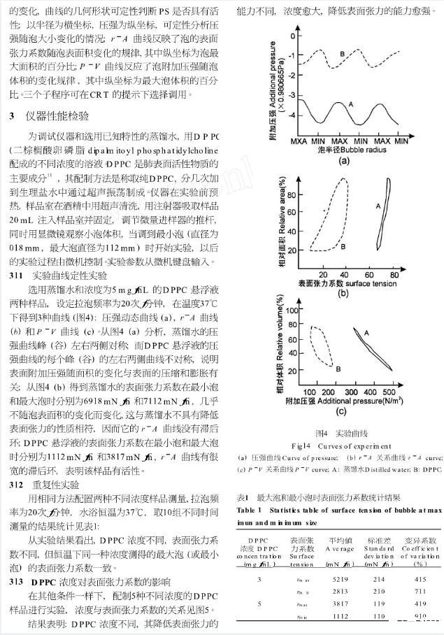 為了研究肺表面活性物質表面的物理特性,我們改進Enhorning根據Laplace原理提出的泡式表面張力測定技術,建立了微機控制泡式表面張力檢測系統,使實驗周期短,操作簡單,所得結果與前人的結果相符。