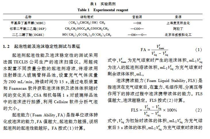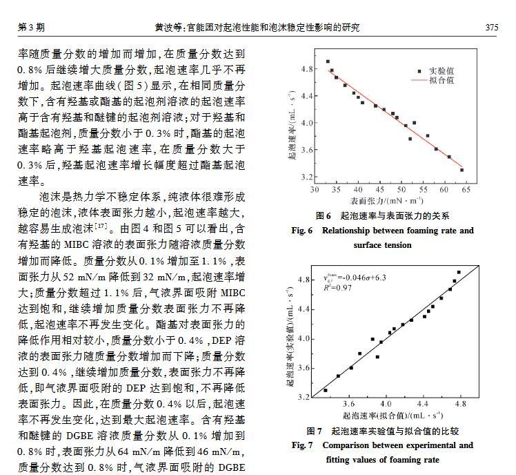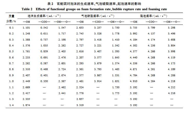 官能團對起泡性能和泡沫穩定性影響的研究