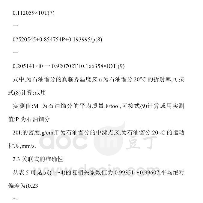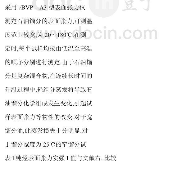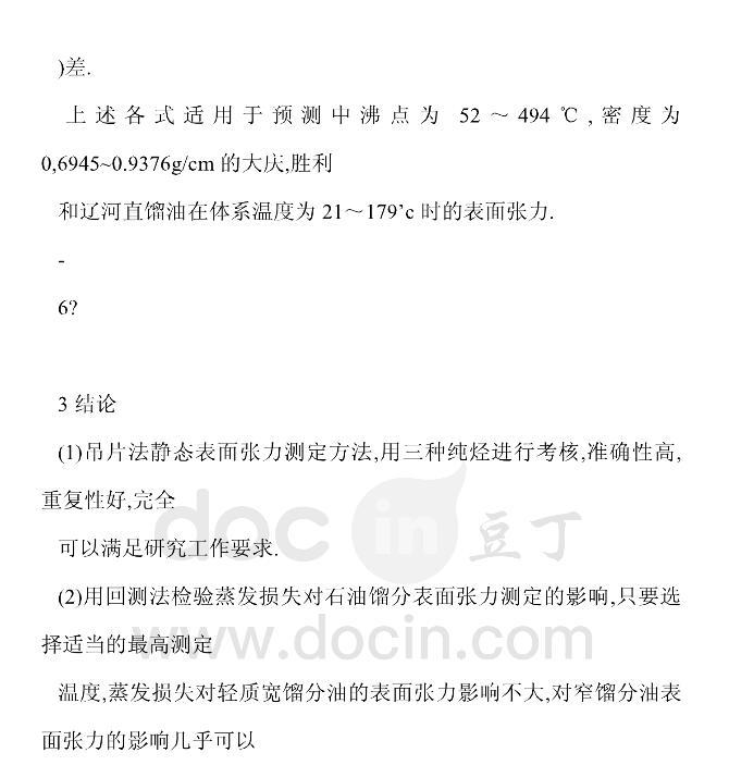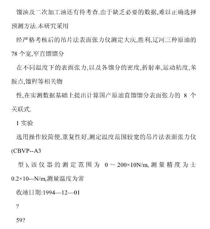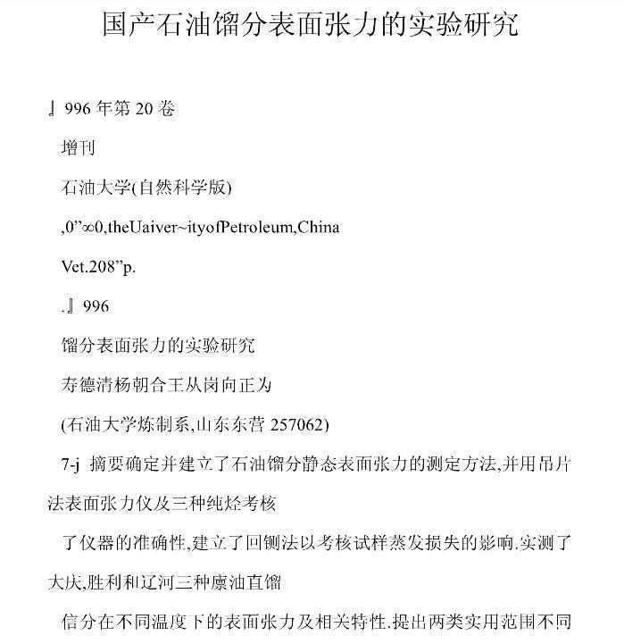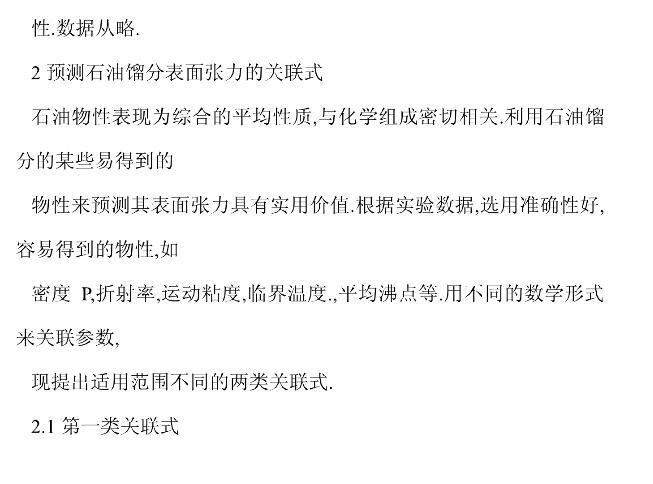 【摘要】:確定并建立了石油餾分靜態表面張力的測定方法,并用吊片法表面張力儀及三種純烴考核了儀器的準確性,建立了回測法以考核試樣蒸發損失的影響。實側了大慶、勝利和遼河三種原油直餾餾分在不同溫度下的表面張力及相關特性。提出兩類實用范圍不同的預測國產石油餾分表面張力關聯式,其平均相對偏差分別為1.17%~1.26%和1.77%~2.77%,可滿足一般工藝要求。