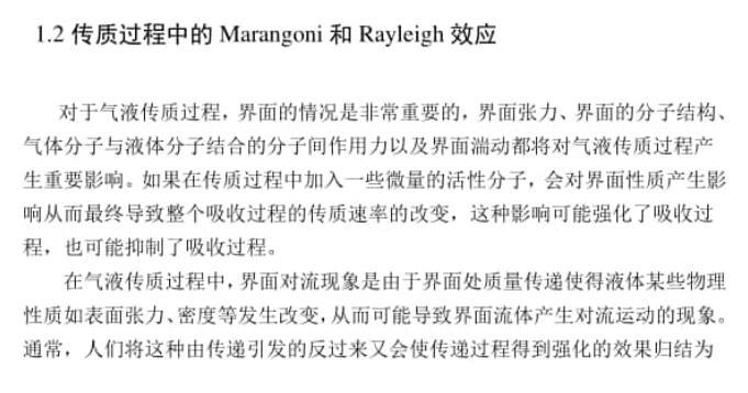 【摘要】:氣液傳質在化工過程中普遍存在,研究氣液傳質強化具有非常重要的意義。在氣液傳質過程中,液體表面張力是控制界面傳質的重要參數,表面張力的變化會導致界面不穩定,在一些條件下會引發近界面液體的對流現象,即Marangoni對流。界面對流的產生將對氣液傳質過程造成顯著影響。本文通過添加低表面張力物質,研究了低表面張力物質對氣液傳質過程的影響,以期尋求強化氣液傳質的有效手段。