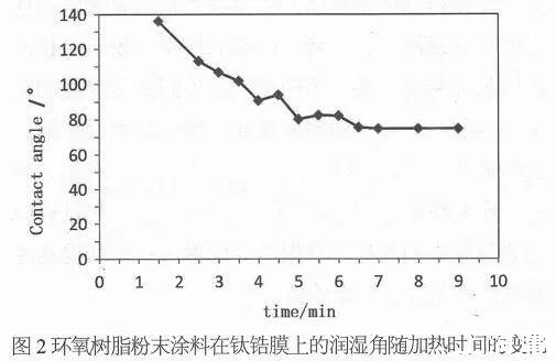 這說明環氧樹脂粉末涂料對鈦鋯膜的潤濕性良好,能夠自發地在涂層表面進行鋪展,且涂層具有良好的附著力。