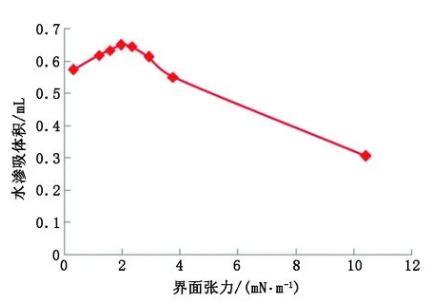 圖2界面張力對最終水滲吸體積的影響(試驗結果)